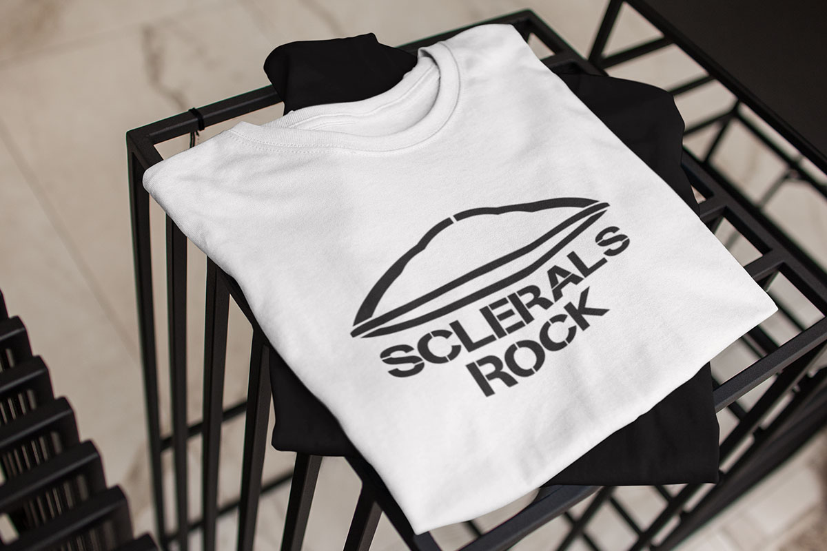Stylish t-shirt with ‘Sclerals Rock’ graphic.